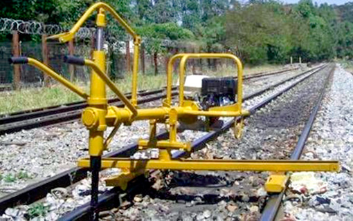 Especificações Técnicas: Sistema de caixa de engrenagens com eixo vertical articulado sistematicamente, para transmitir rotação à broca para furação do dormente; montada em chassis tubular e tracionada por motor à gasolina 4T, 8,0 HP, proporcionando rotação horária de 500rpm, acoplada sobre carrinho transportador de bitola ajustável (1,00m e 1,60m) permitindo o deslocamento operacional da máquina sobre a via férrea, proporcionando maior produtividade com alta precisão, qualidade e segurança na furação dos dormentes.