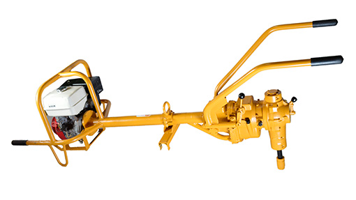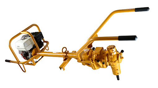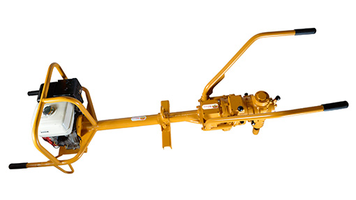 Especificações Técnicas: Sistema de caixa de engrenagens com cabeça pivotante, montada em chassis tubular, tracionada por motor gasolina 4T, 9HP, proporcionando rotação horária e anti-horária, ambas com 02 velocidades: 150 RPM em velocidade alta e 50 RPM em velocidade reduzida; Acoplada sobre carrinho transportador de bitola ajustável (1,00m e 1,60m) para deslocamento da máquina sobre a via férrea, proporcionando maior produtividade com alta precisão, qualidade e segurança na furação dos dormentes.